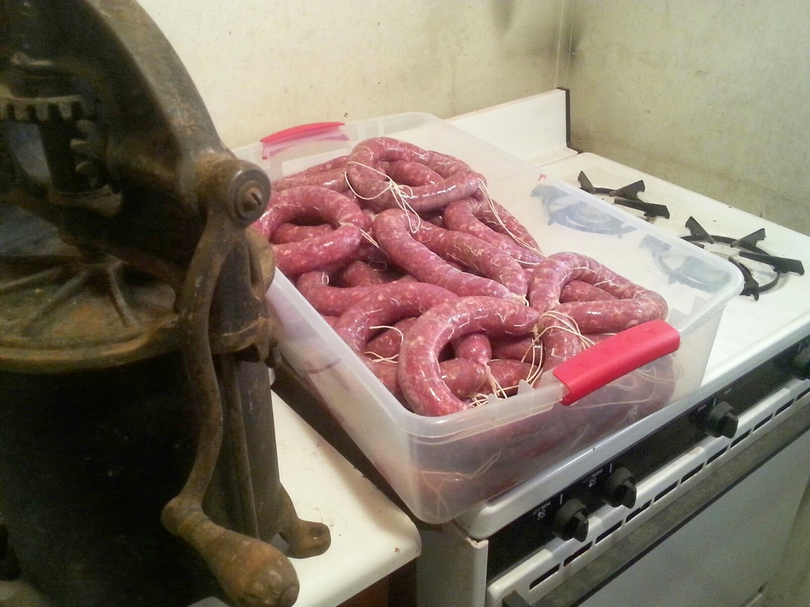 Karl Oestreich called and said he and his boys, Blake and Alden, would be grinding meat and making sausage if I wanted to participate. We cut up venison and pork butts for our meat and ran it through Karl’s grinder, added our favorite seasonings and cure, then put it out in the cold to blend the meat and seasonings for 24 hours. We spent part of the next day stuffing the sausage in casings and hanging the meat in the smoke house to smoke for a couple of days. The end product was well worth the work. We plan on making some more hot links and also some summer sausage soon.